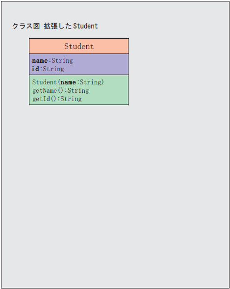 演習2-3の解答はクラス図(拡張したStudent)のようになります。
