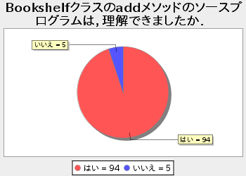 質問2 Bookshelfクラスのaddメソッドのソースプログラムは,理解できましたか.  (RADIO)
