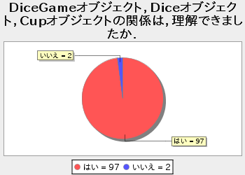 質問2 DiceGameオブジェクト,Diceオブジェクト,Cupオブジェクトの関係は,理解できましたか. (RADIO)