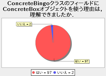 質問2 ConcreteBingoクラスのフィールドにConcreteBoxオブジェクトを使う理由は,理解できましたか. (RADIO)